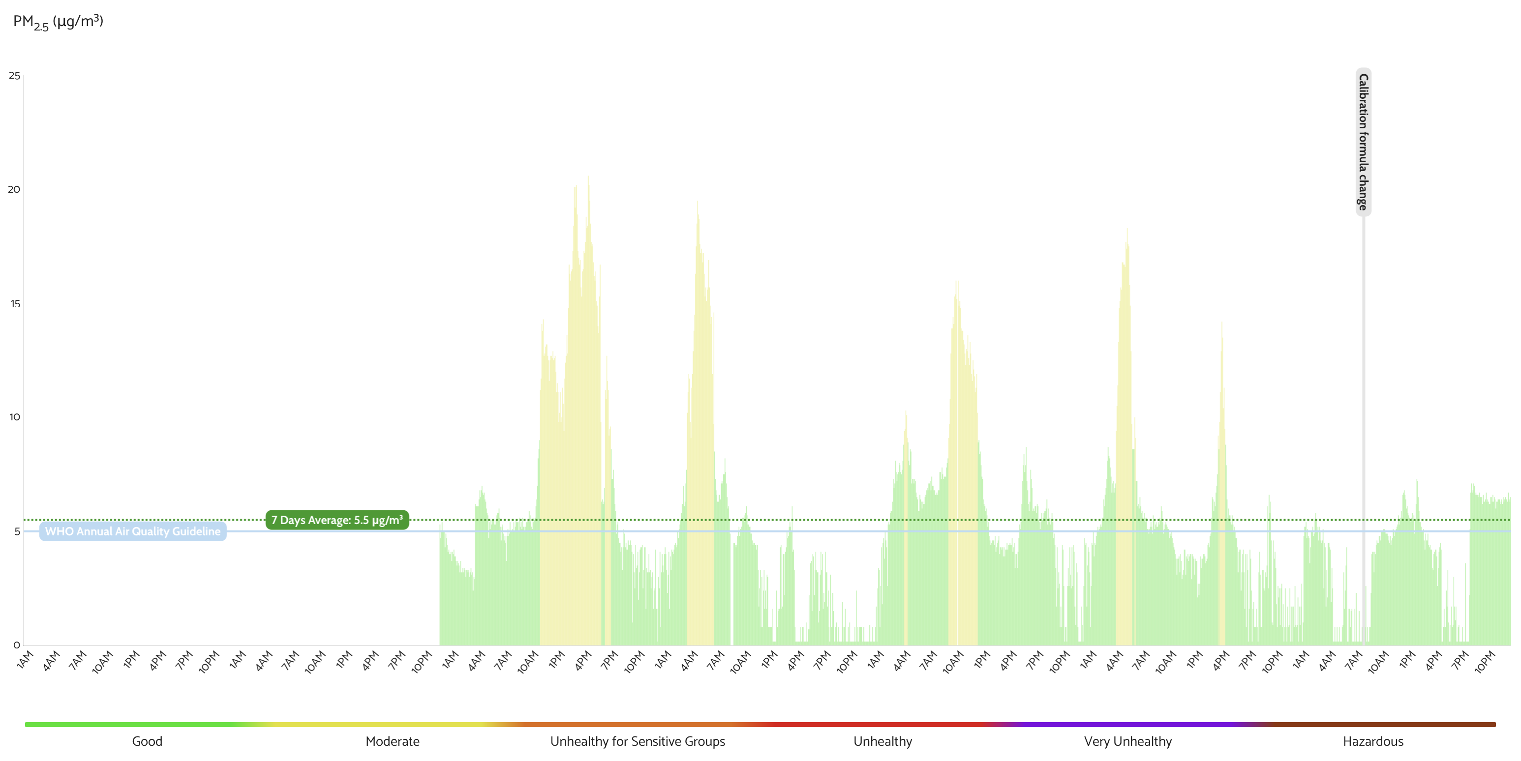 These readings were taken during June (summer) and were taken on the 11th floor of an apartment in the southern part of the city (near Mega Center). Interestingly, there is quite a consistent spike that occurs in the evening/early morning. I’m not quite sure what caused this, but it does appear to be quite regular.