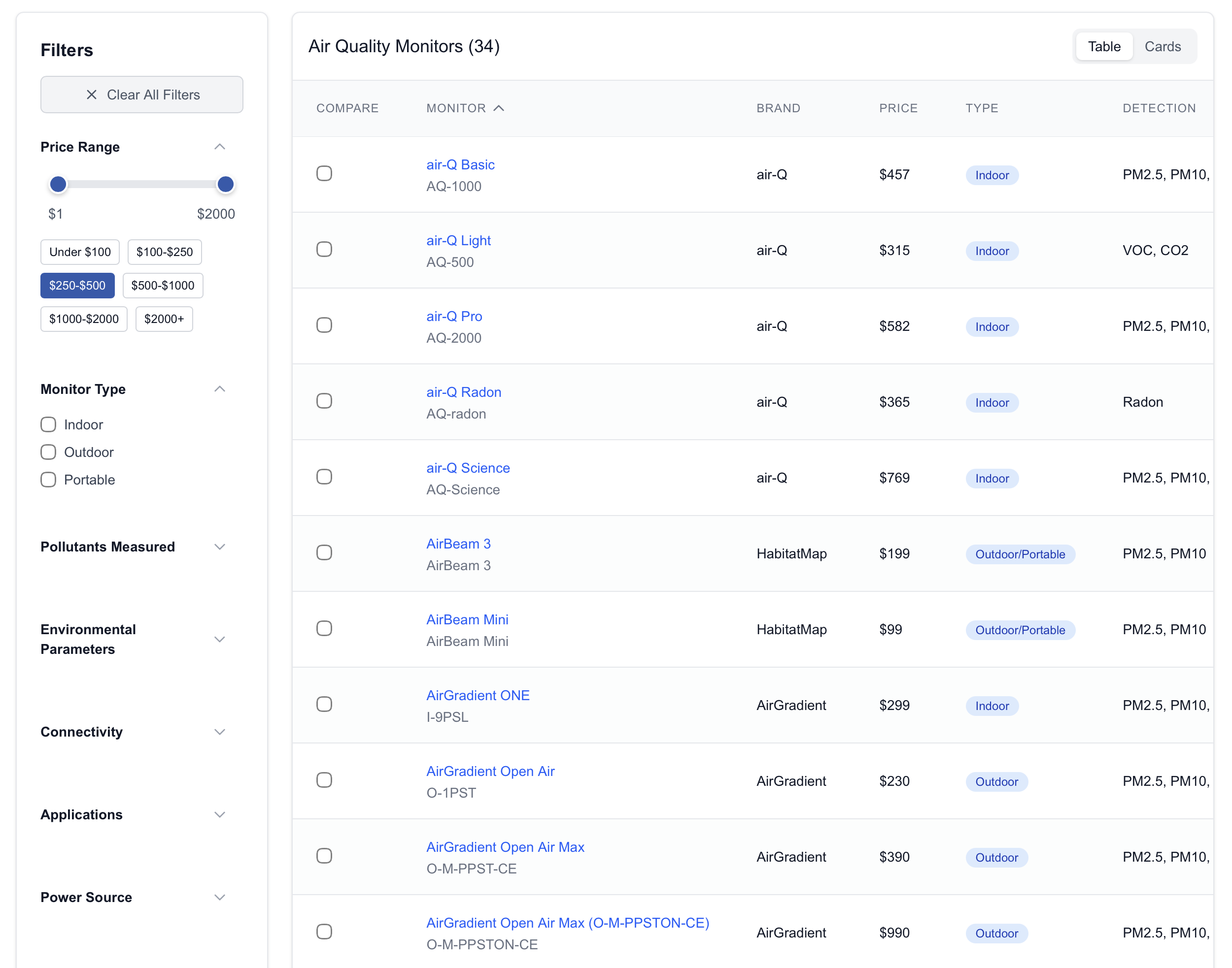 This is something I’ve wanted to create for quite a while as it’s very difficult to directly compare air quality monitors - even I’ve run into this issue! This is the kind of tool I always dreamt of being able to use.