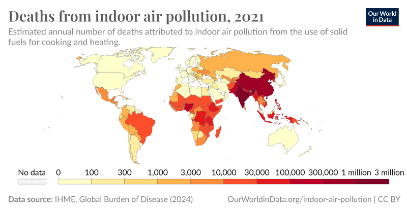 The vast majority of these deaths are in the global south and are caused primarily by the use of solid fuels in cooking and heating. For this reason, I’ve found that many people in developed countries are often unaware of how polluting cooking can be or don’t care. This always bothers me because it impacts all of us (albeit disproportionality).