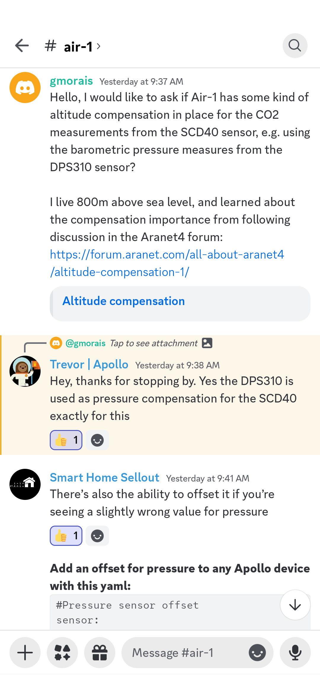 Initially, I was inclined to purchase the Apollo Air-1 as they do have an air pressure sensor that inputs to their CO2 sensor, which would then solve the issue above. However, I was also not so confident with to potential heating issue due to small enclosure, and how that could potentially impact the sensors measurements.