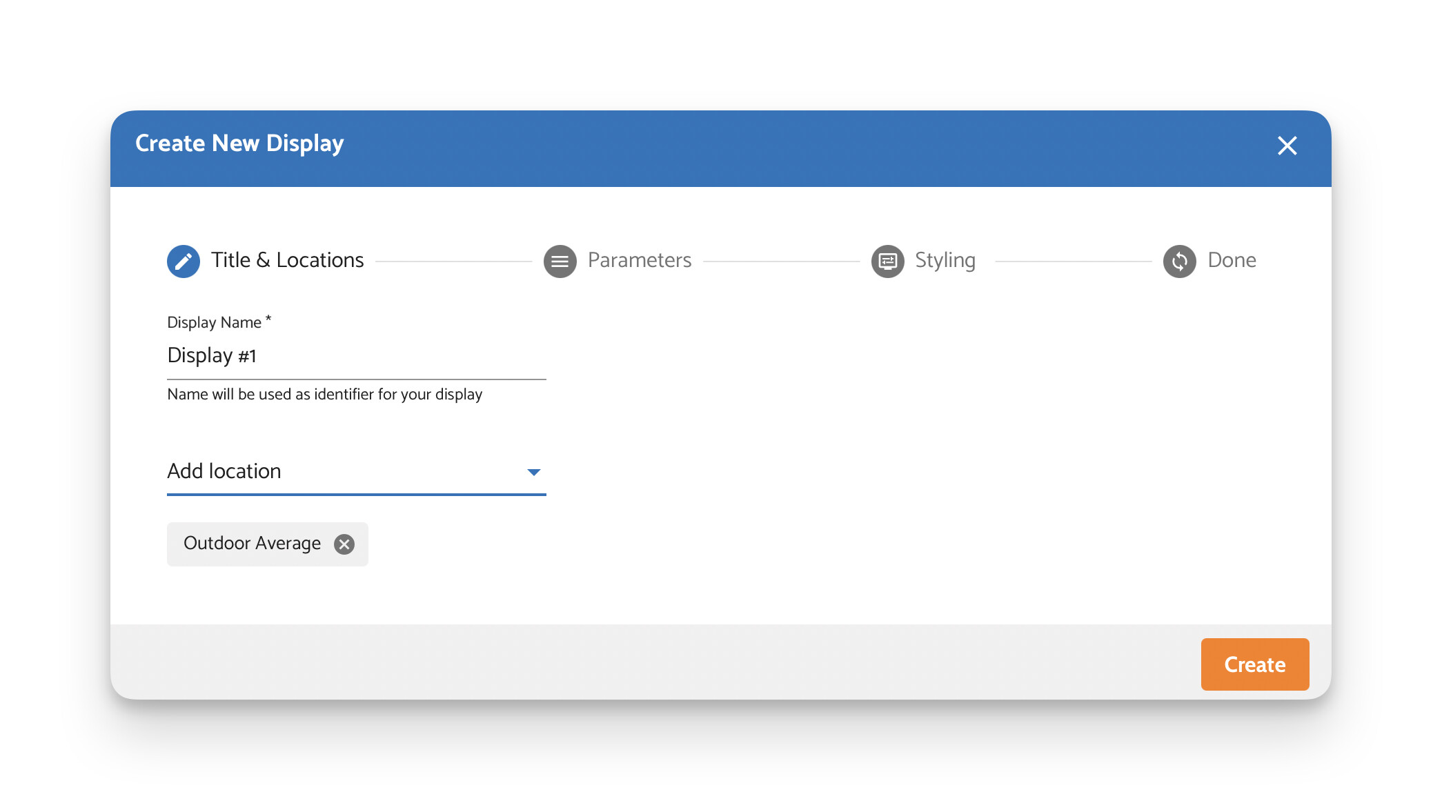 Below is a screenshot of the menu which lets you create ‘displays’. You can choose which monitors to show, and you can even show outdoor/indoor averages if you want to (this is great for showing outdoor air quality vs a specific indoor monitor).